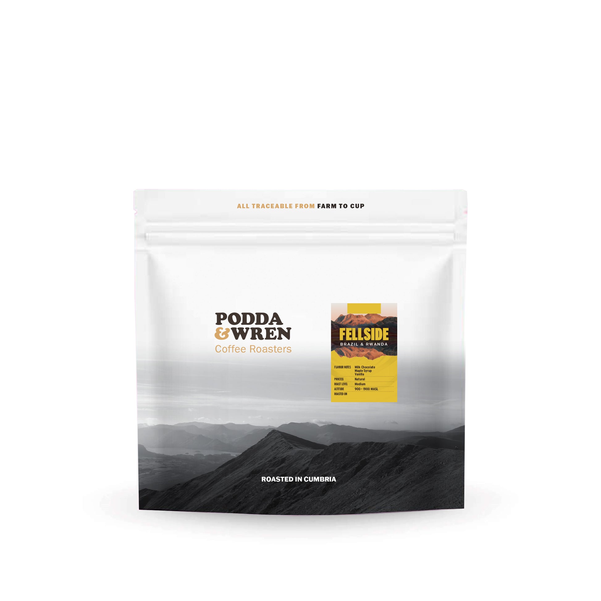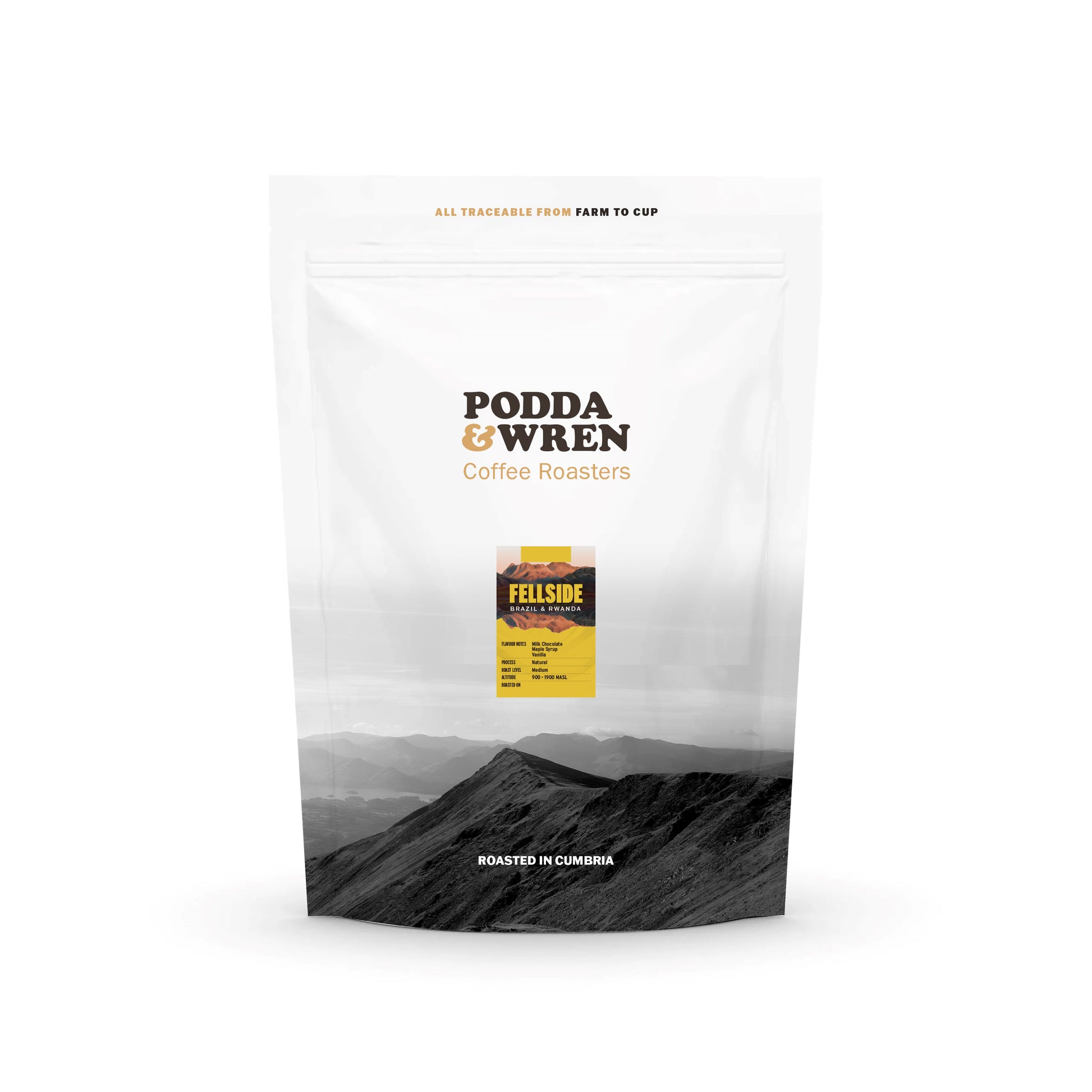 In it's current iteration, Fellside is made up of two natural process offerings, both sustainably sourced and ethical, from Brazil and Rwanda respectively, we aim to have the same taste profile year-round for consistent brewing.