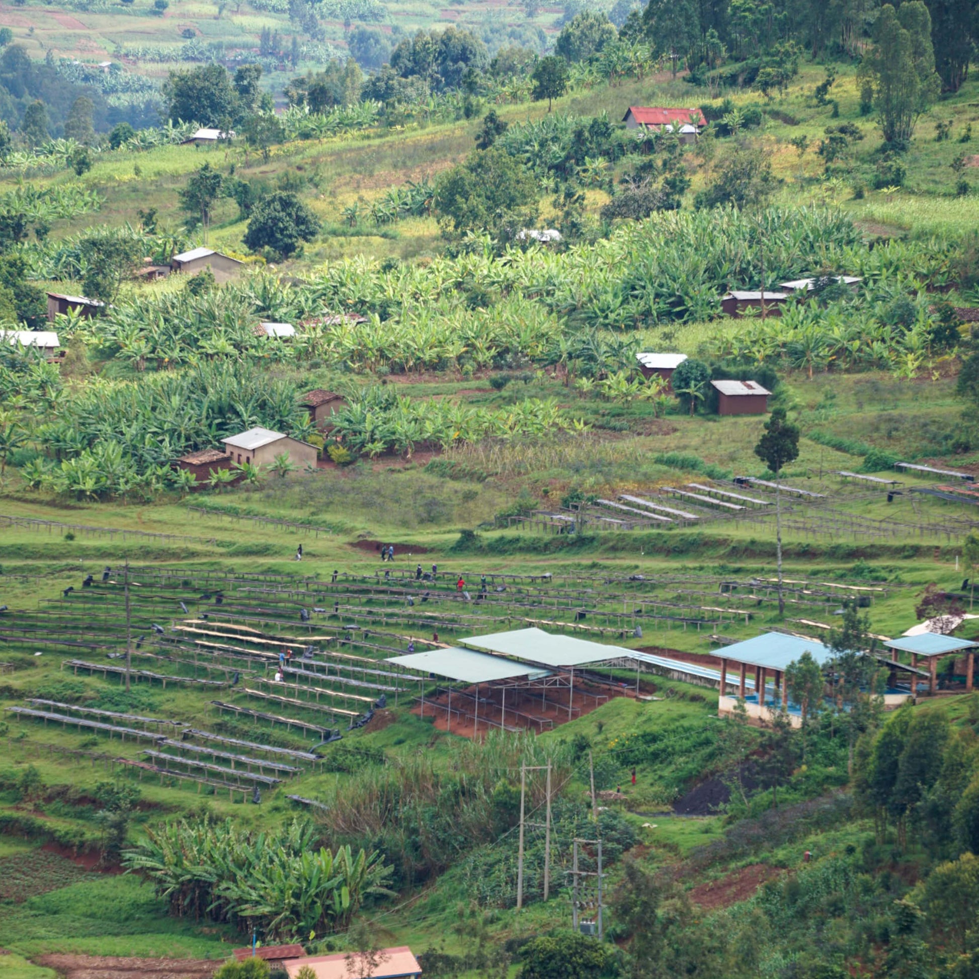 Mbizi is a certified organic community lot from the Rwandan Women Coffee Extension* program (WCE) in the Kamoniyi District at the Mbizi Washing Station in the Southern Province at elevations between 1600 - 1900 meters above sea level. A huge benefit for Rwandan speciality producers is that their land is suitably fertile to produce complex flavour profiles due to it's previous volcanic activity. On-site, organic fertilizers are produced using coffee pulp, manure, banana leaves and other by-produce to keep carbon levels low and utilising a regenerative farming ecosystem.